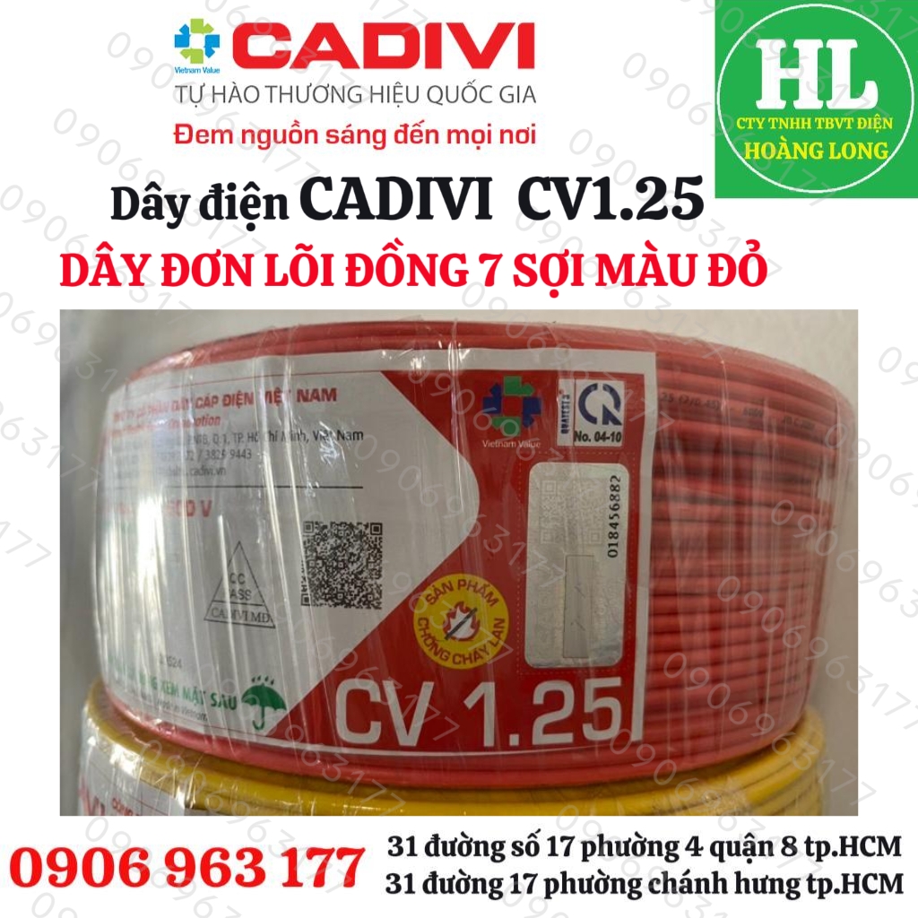 DÂY ĐIỆN CADIVI 1.25 ĐƠN LÕI 7 SỢI CV1.25 (CUỘN 100 MÉT)