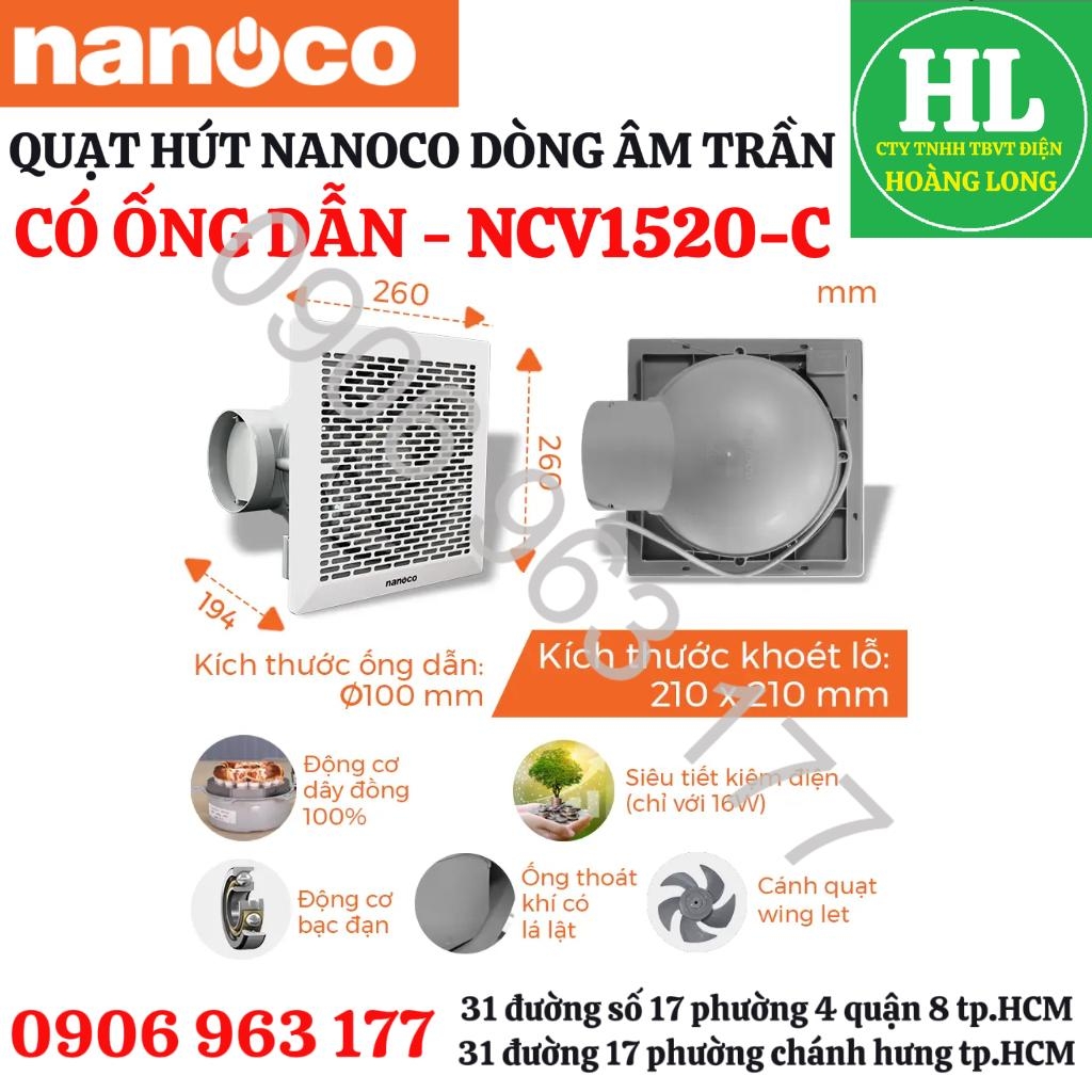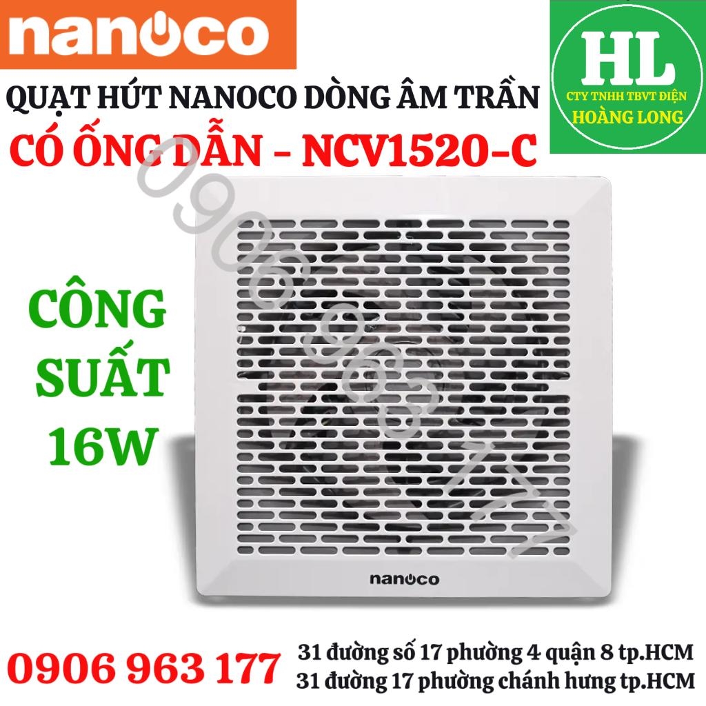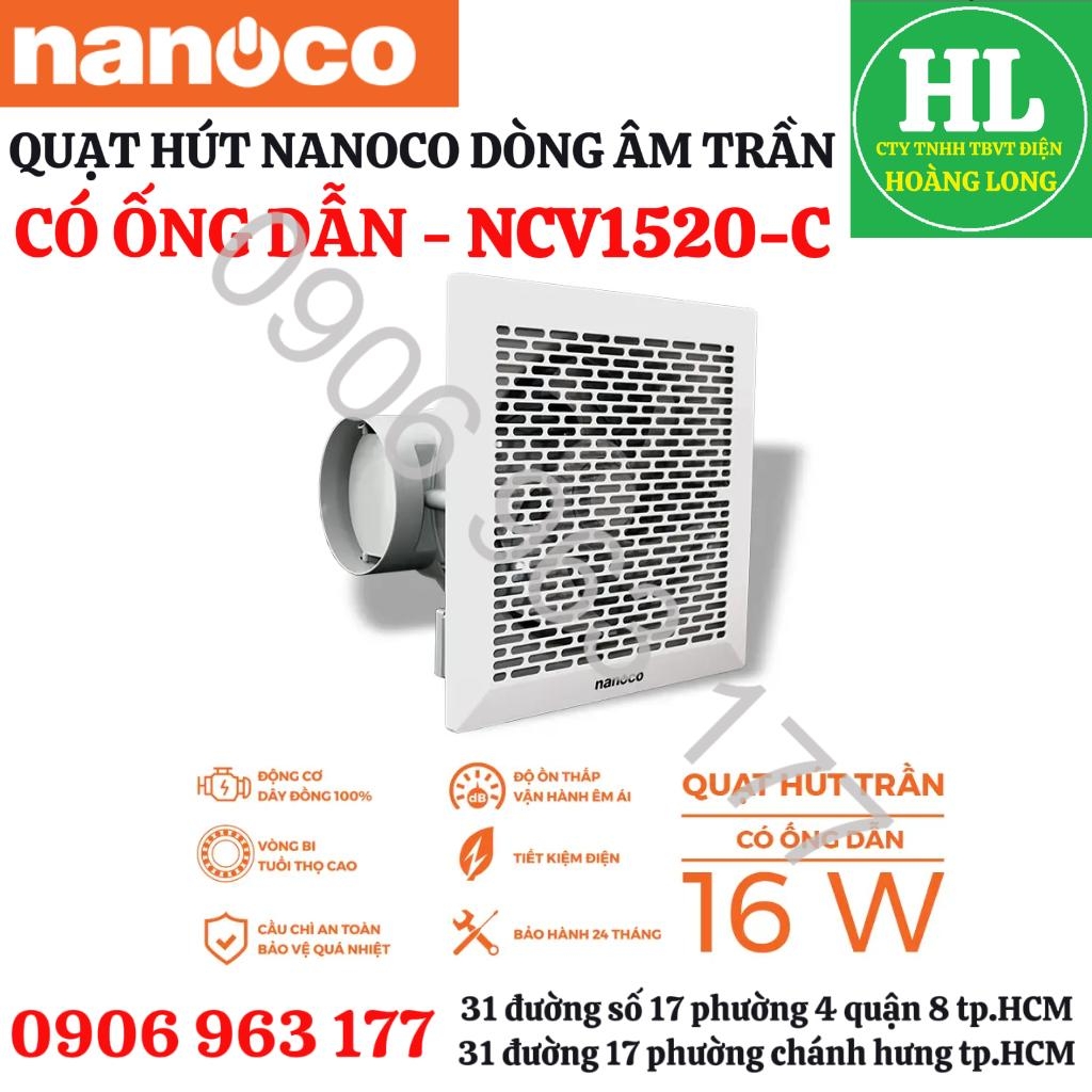 NANOCO - QUẠT HÚT ÂM TRẦN DÙNG ỐNG DẪN NCV1520-C 16W